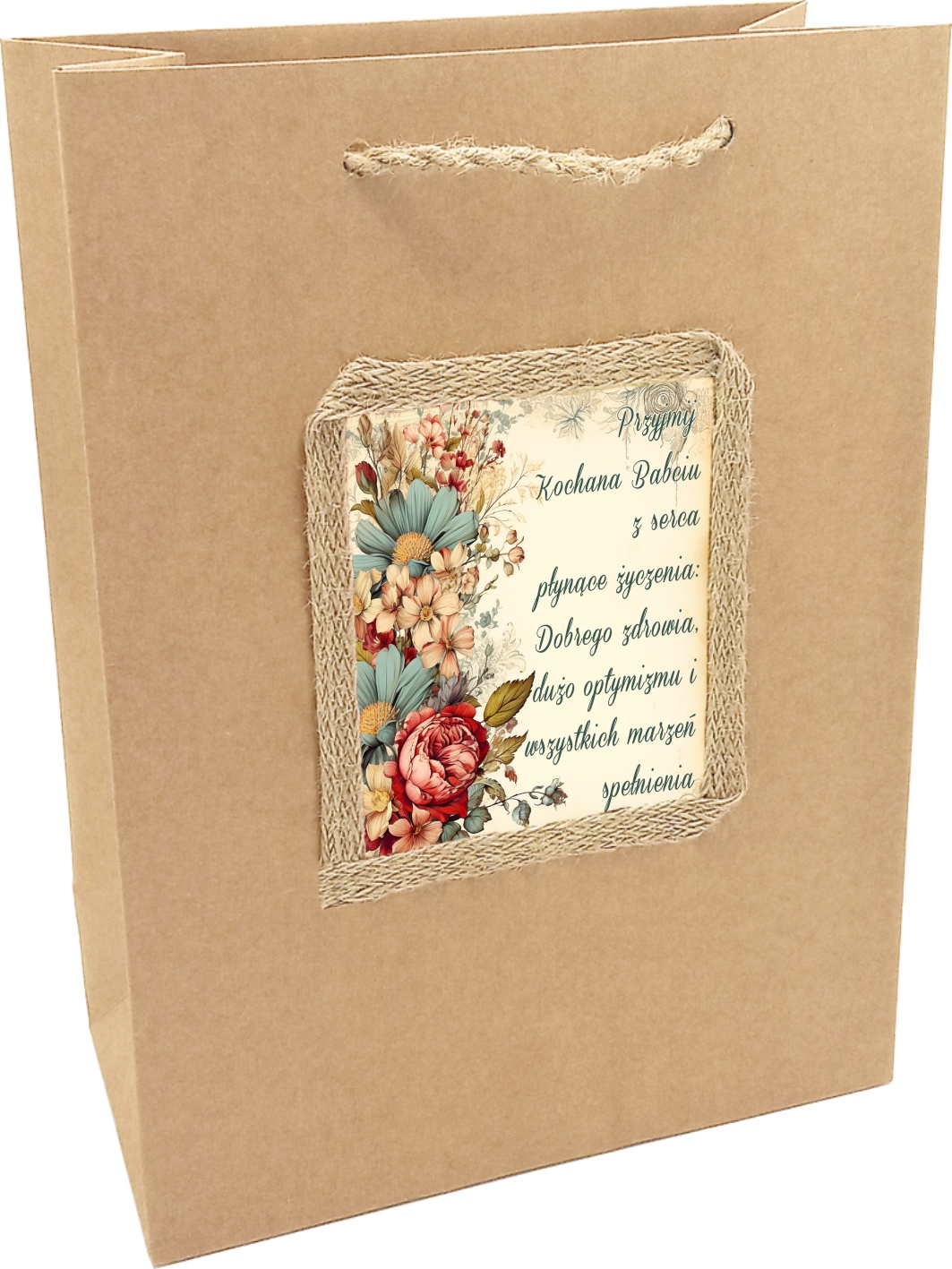 Szukasz idealnego opakowania na Dzień Babci? Oto coś, co z pewnością wywoła uśmiech na twarzy Twojej kochanej Babci – torebka z nadrukowanymi życzeniami! Lewą krawędź zdobią piękne kwiaty, a reszta torebki stanowi przestrzeń na życzenia: